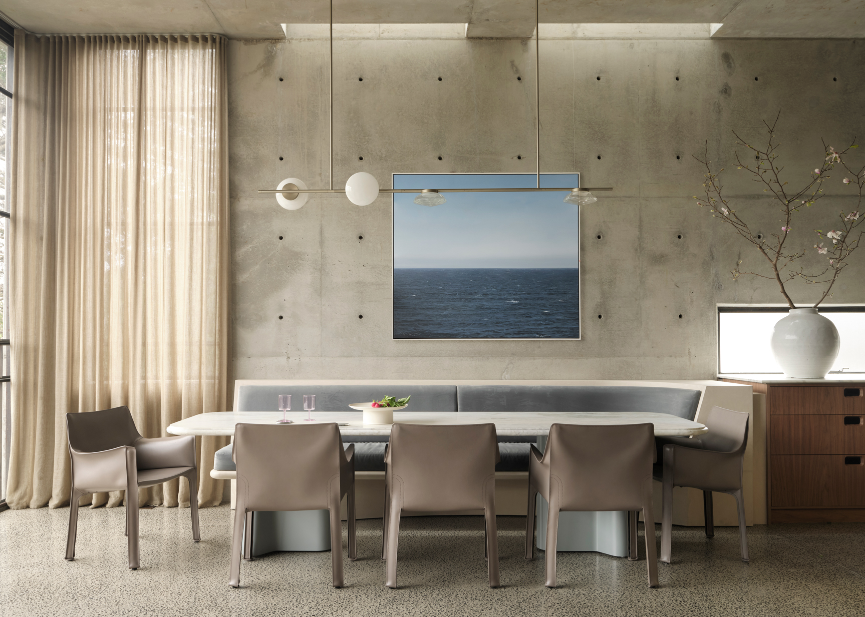 The client’s design request was to infuse warmth, intimacy, and comfort into a towering concrete structure, transforming it into a family home that promotes elevated living while accommodating the way they wished to use the space. The family were after a place that could host large gatherings yet also provide quiet retreats. Though meticulously curated, the design aimed at creating a space that would enhance the quality of daily life.