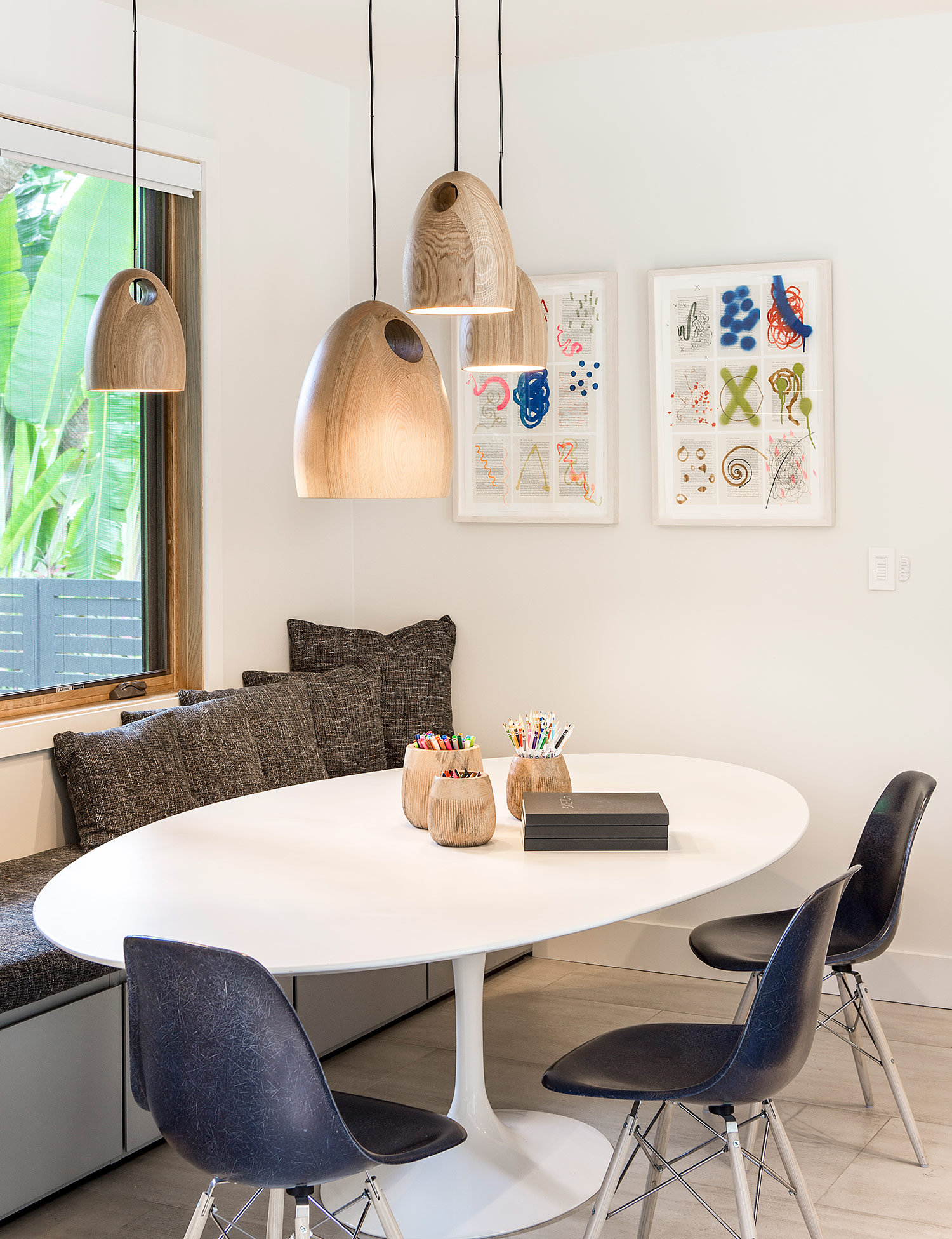The design challenge from the start was to provide a light finish palette and furnishings that could be both beautiful and durable to hold up for the family that has three pre-teen boys.