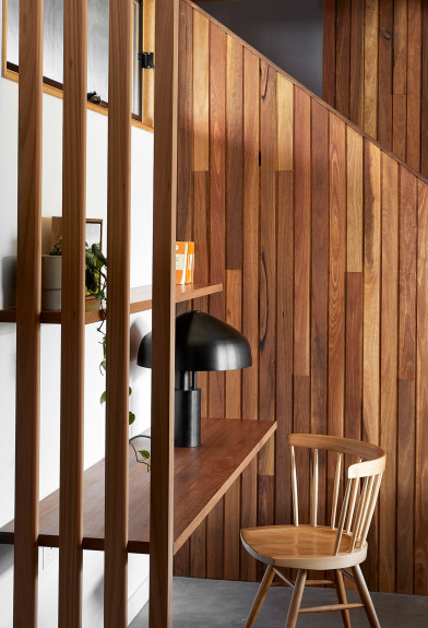 From the street, although clearly a contemporary home, the form and siting compliments and harmonises with the existing older period homes in this quiet residential street. A generous front setback gives over garden space to the public and makes a green contribution to the streetscape.