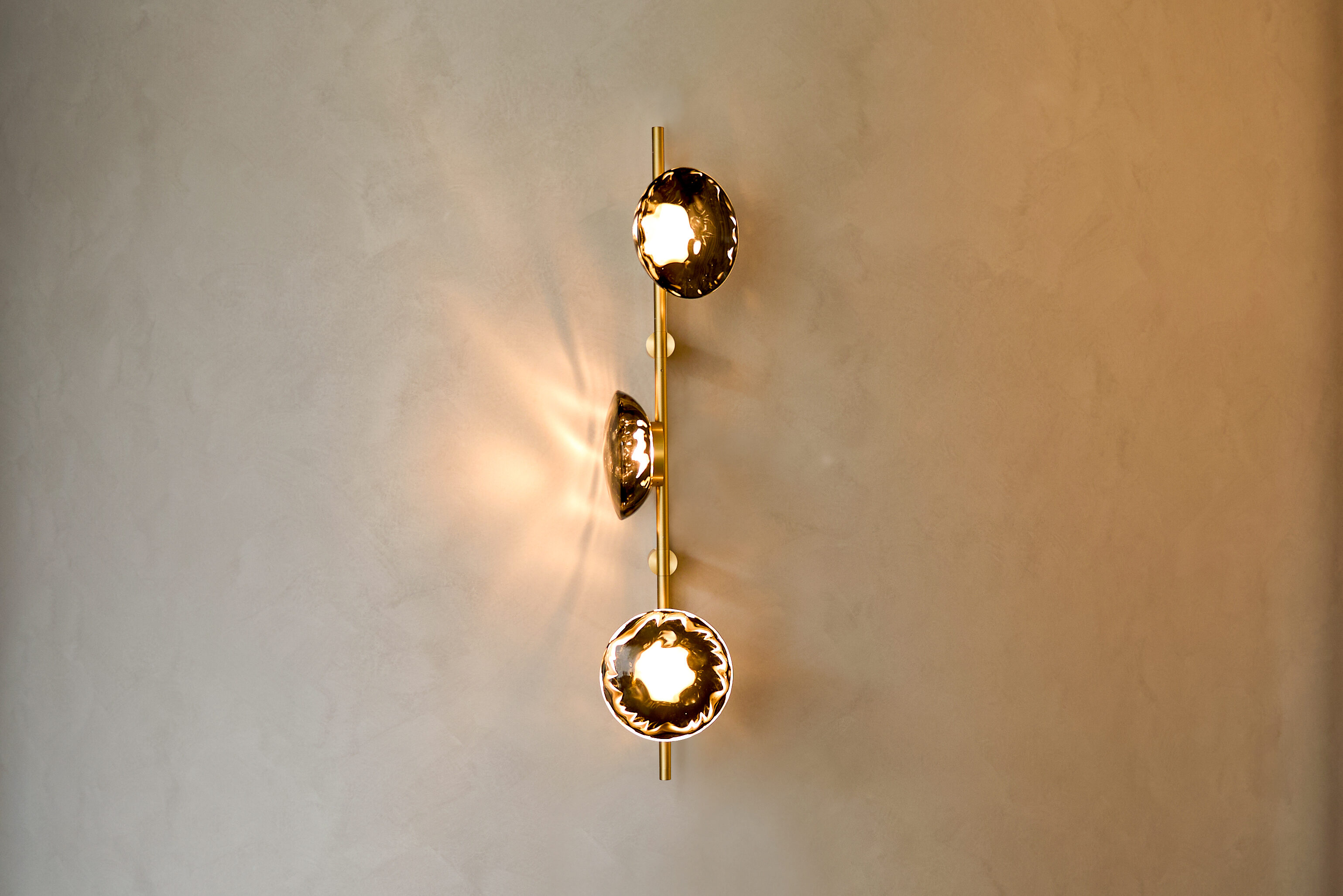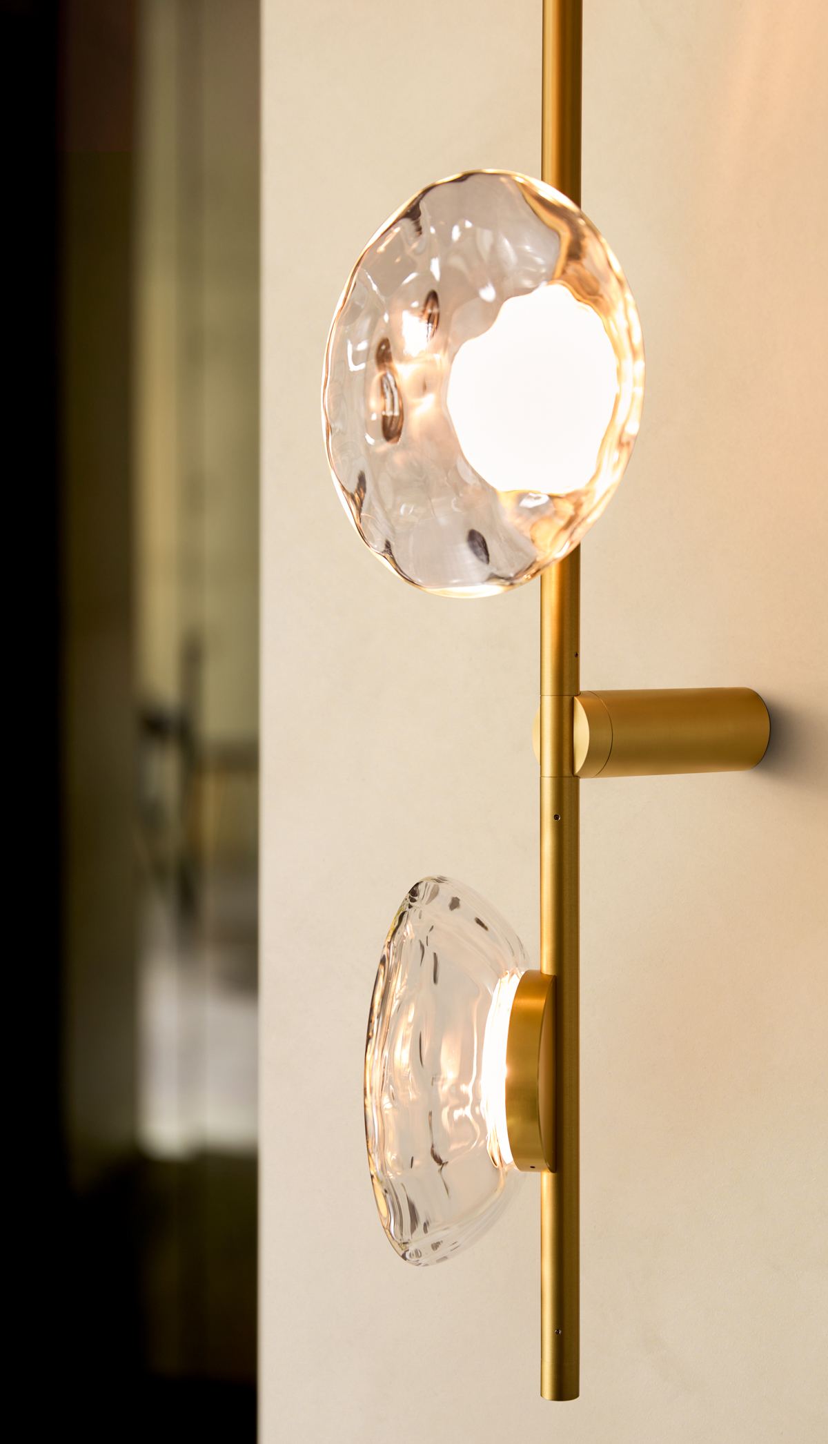 The new Ceto Linear Wall light is a continuation of the Ceto lighting collection. Ceto captures the variation and rippling of the surface of the ocean. Each piece reflects a unique pattern, emitting a delicate luminosity, highlighting the presence of the sea. The Ceto Linear Wall light is available in a selection of mouth-blown glass finishes combined with a highly refined machined aluminium body available in a black and champagne anodised finish.