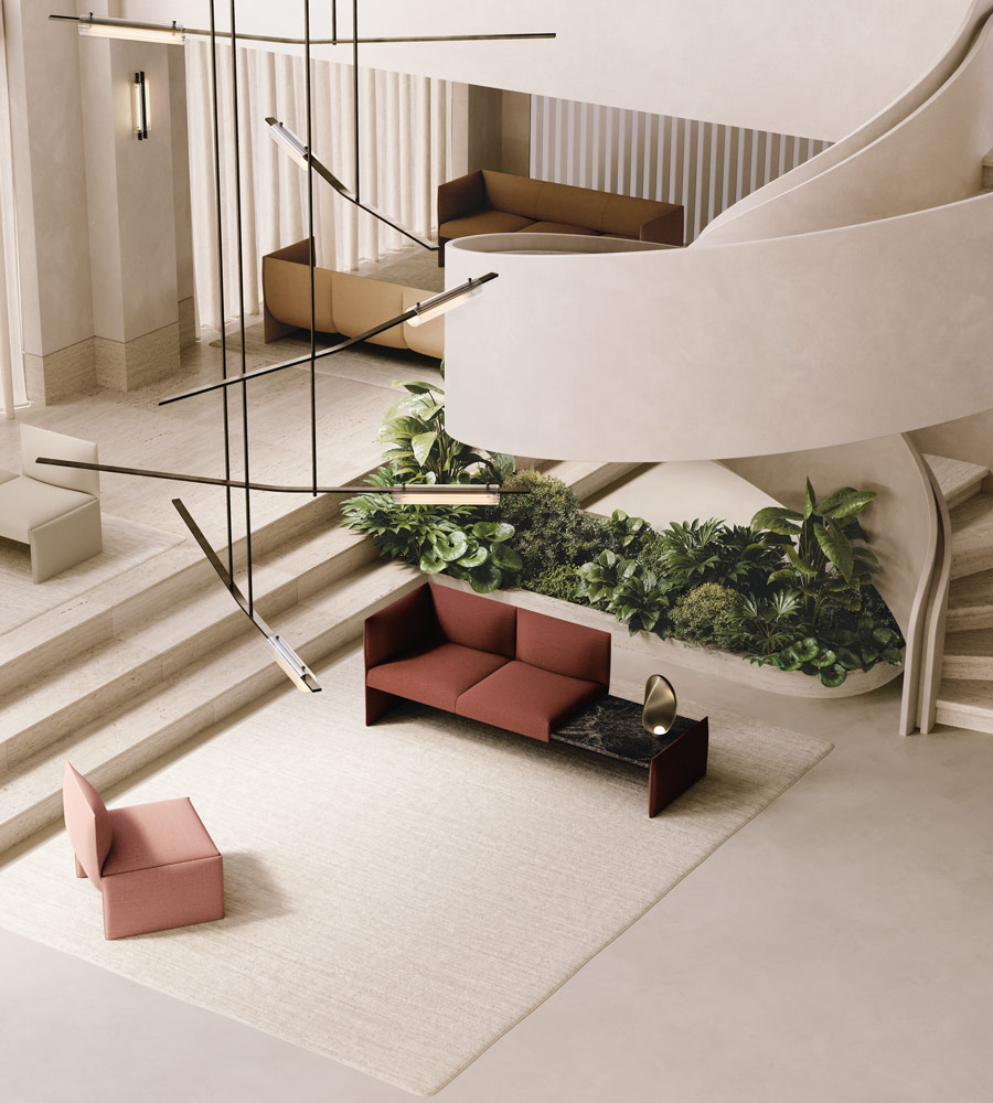 Built on a refined rail system, Dwell offers a sculptural foundation for both relaxed and formal environments, enabling a wide range of configurations for public, commercial and residential settings. Every element has been crafted to foster connection and conversation, while also offering the flexibility to support moments of quiet focus and individual work.