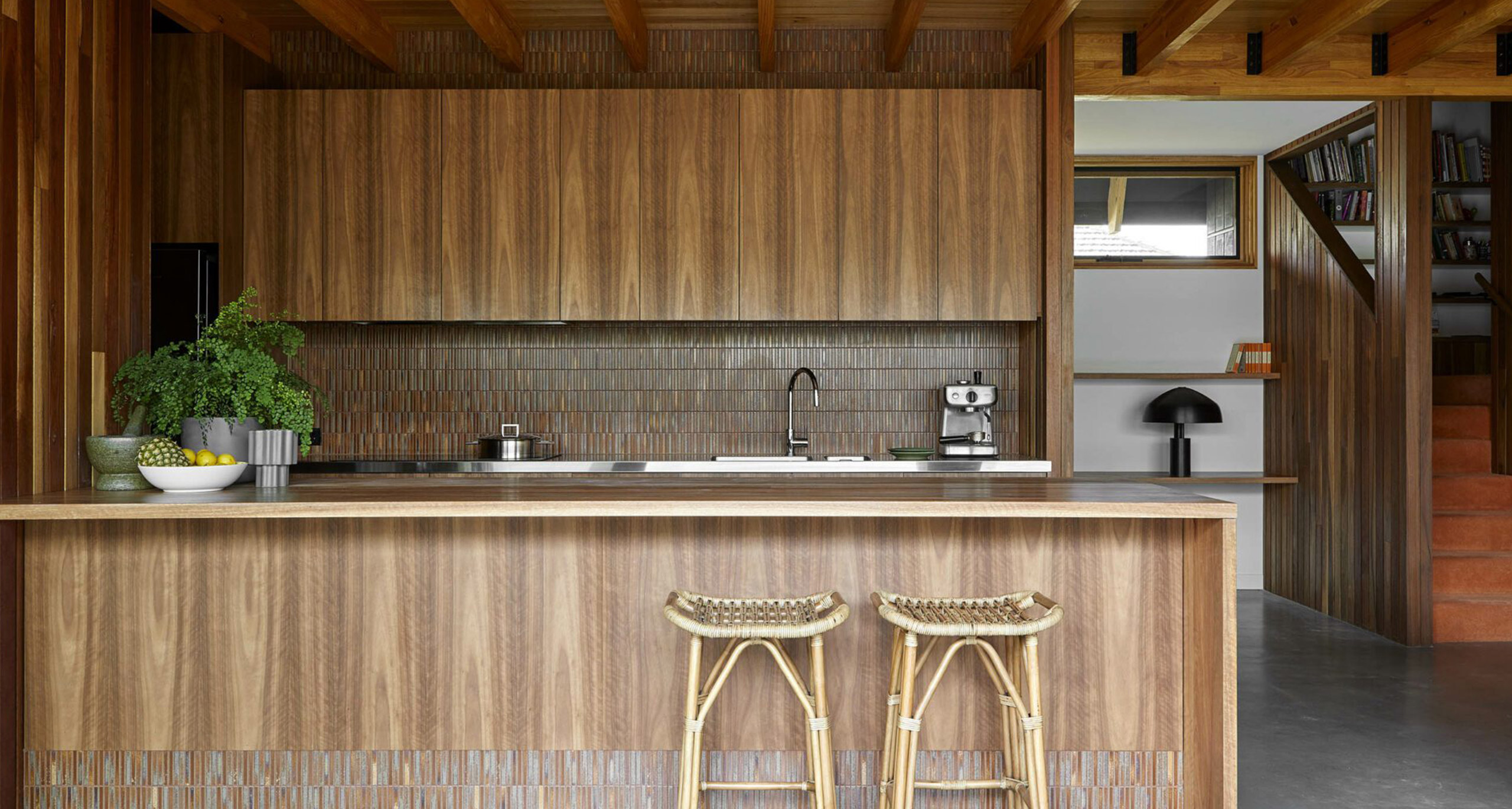 Curated by Homeroom Studio with architecture and interior design by Paul Conrad Architects, this dining space celebrates balance and refined materiality. The Volant Chandelier anchors the room, its linear form echoing the architectural rhythm while casting a soft, diffused glow over the timber travertine table below. The result is a calm and inviting setting where natural textures and sculptural forms come together in quiet harmony.
