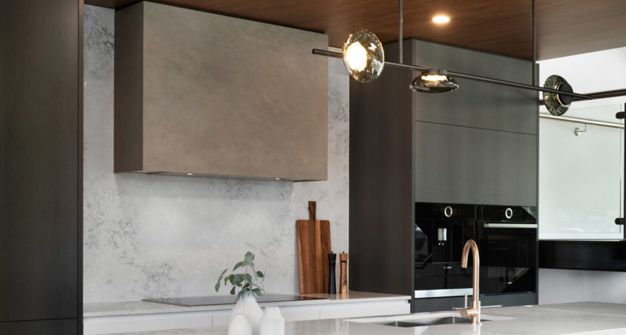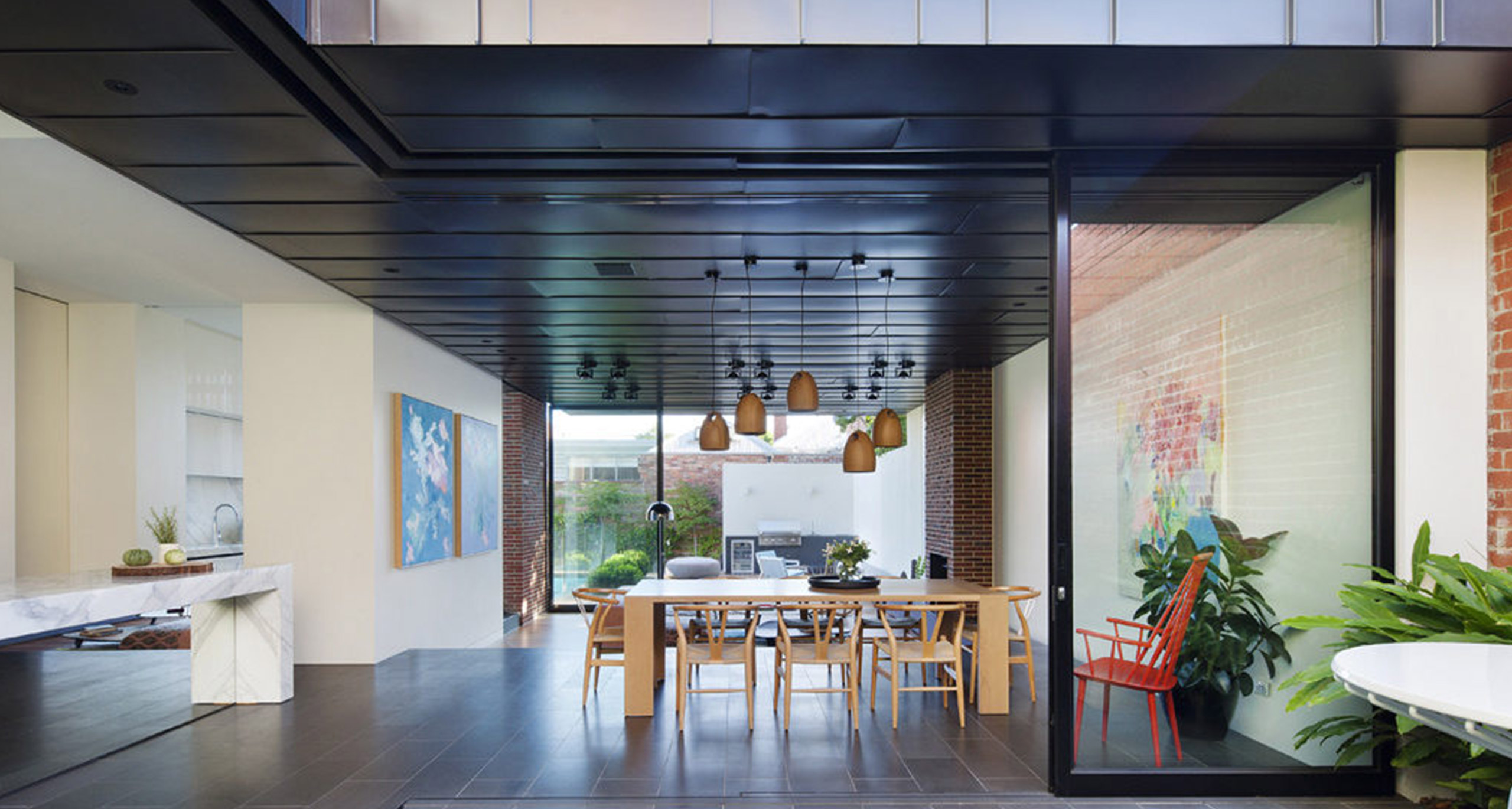 Concealed behind a façade of intricately crafted tiles, a natural warmth tints the interior of Montana Jewel as the light filters through bronzed framed windows and honey toned sheer curtains. A grand timber pivot door with a dark, rich grain and a handcrafted bronze handle, serves as an impressive entry to the home – a stunning design collaboration between Homeroom Studio and ADDARC.