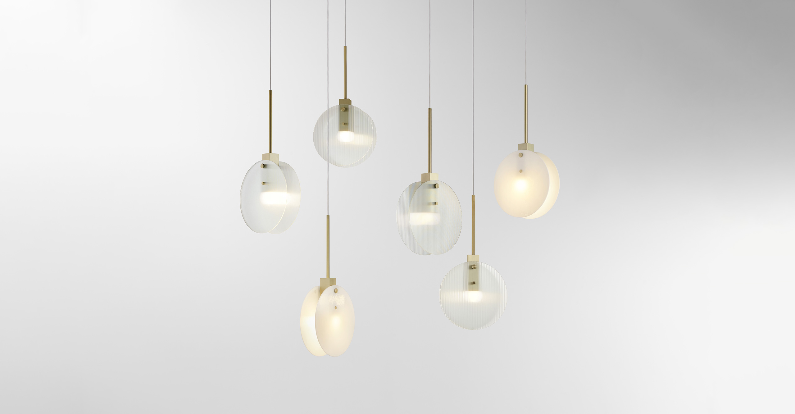 The Nebulae collection takes its name from the natural phenomena of interstellar clouds and their dynamic layered lighting effects. Featuring geometric machined forms coupled with fluid glass discs, Nebulae creates a harmonic balance between the elements. The striking glass diffusers combined with a light source that is both functional and ambient creates a beautifully unique luminaire.