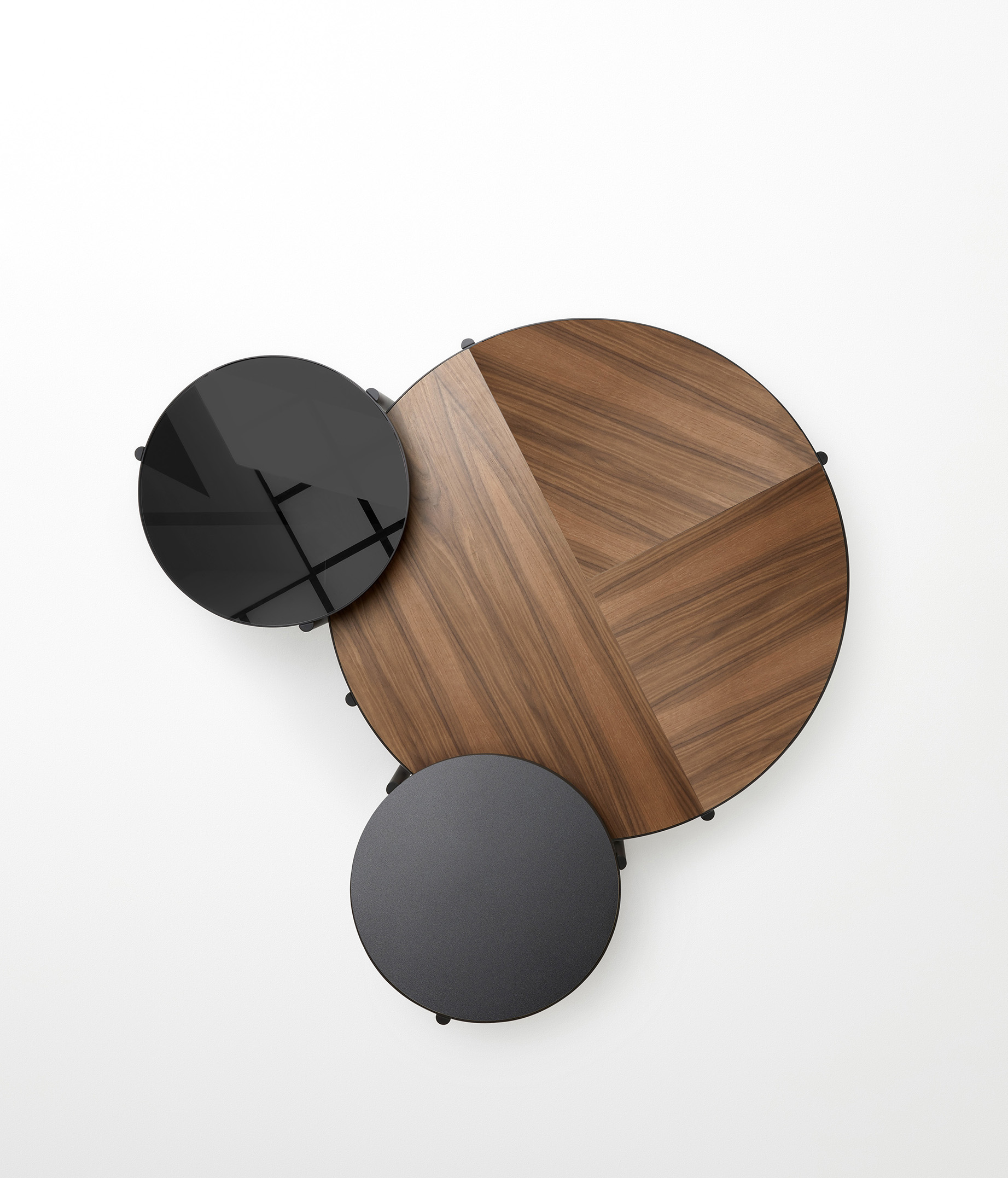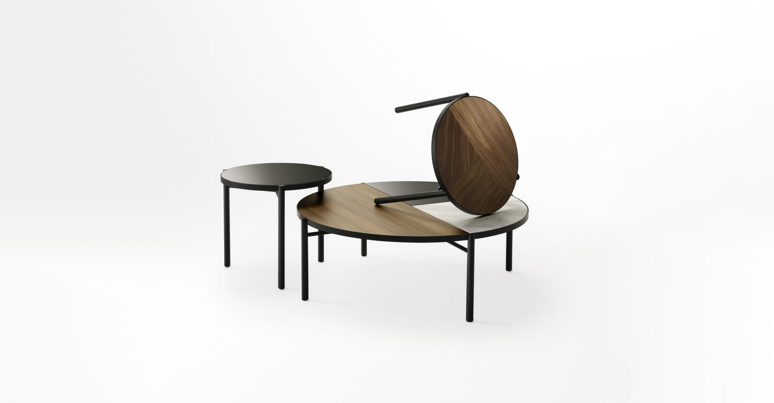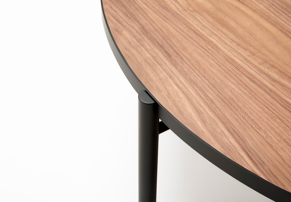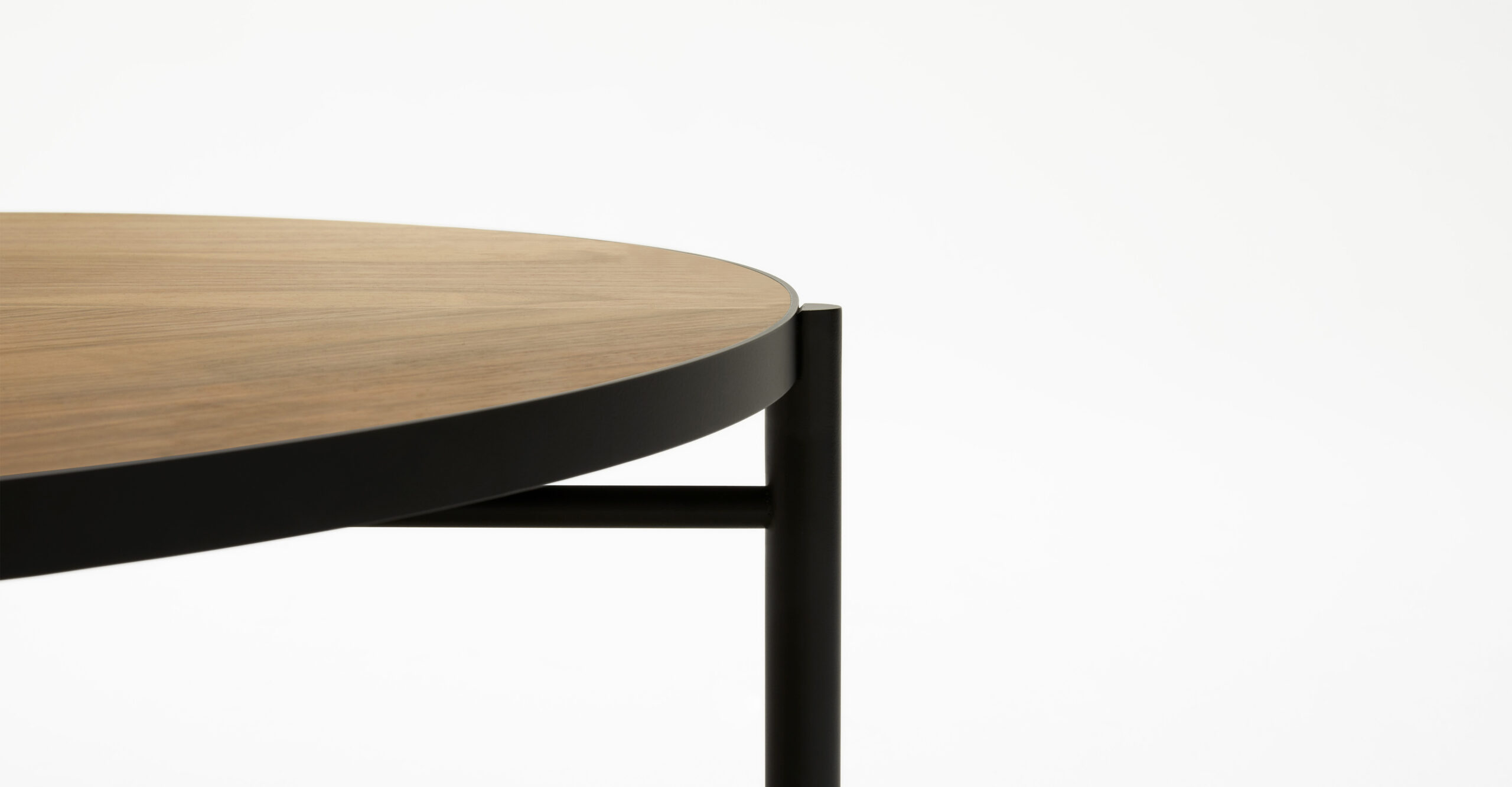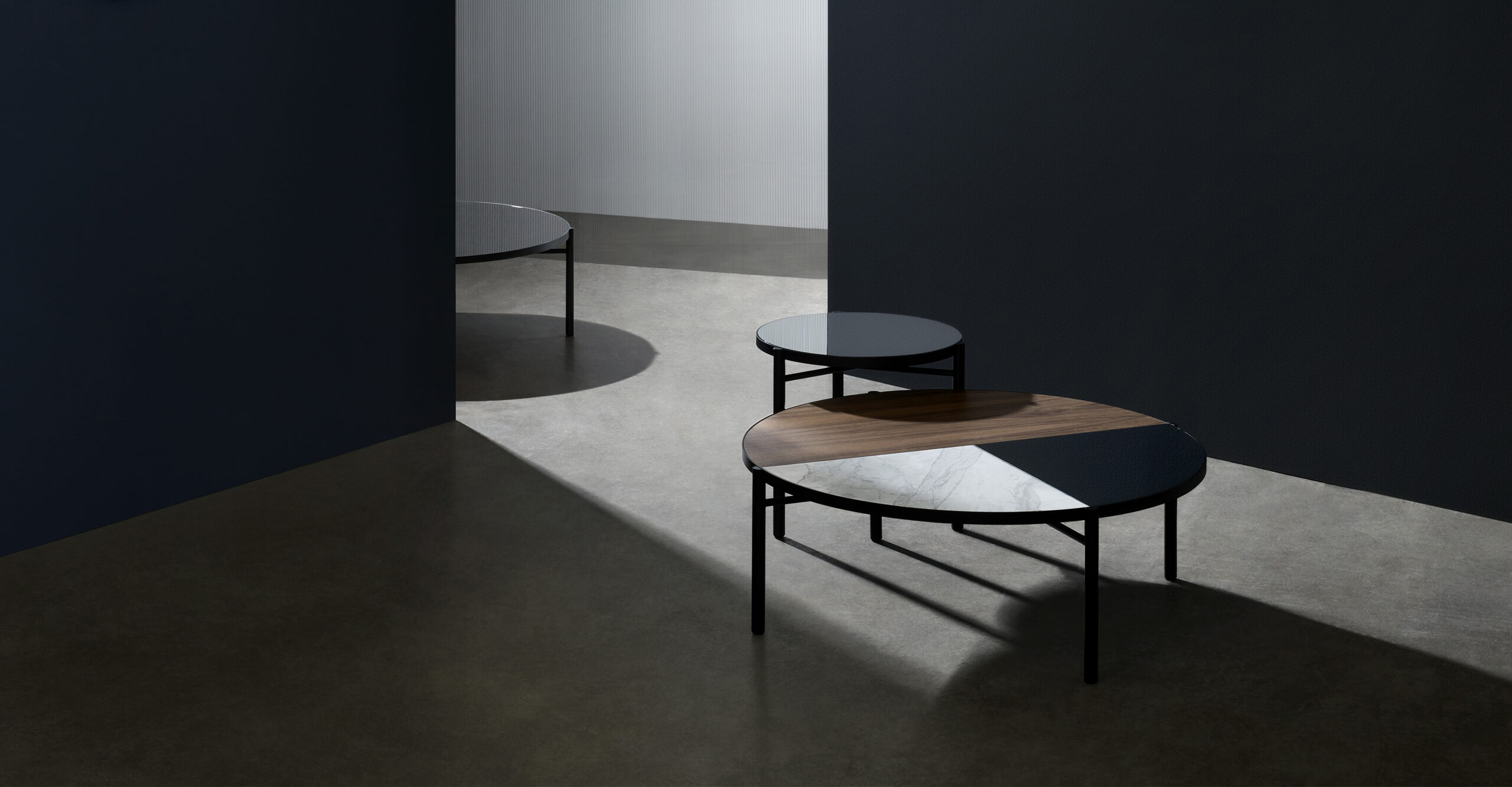 Graphic in nature, the Noon Table offer striking materiality confined within an outer ring. The tabletop is contained by half-milled legs, creating a tension and lightness between the surfaces.