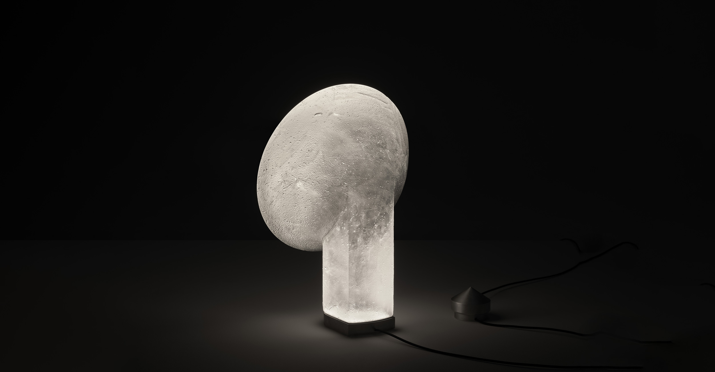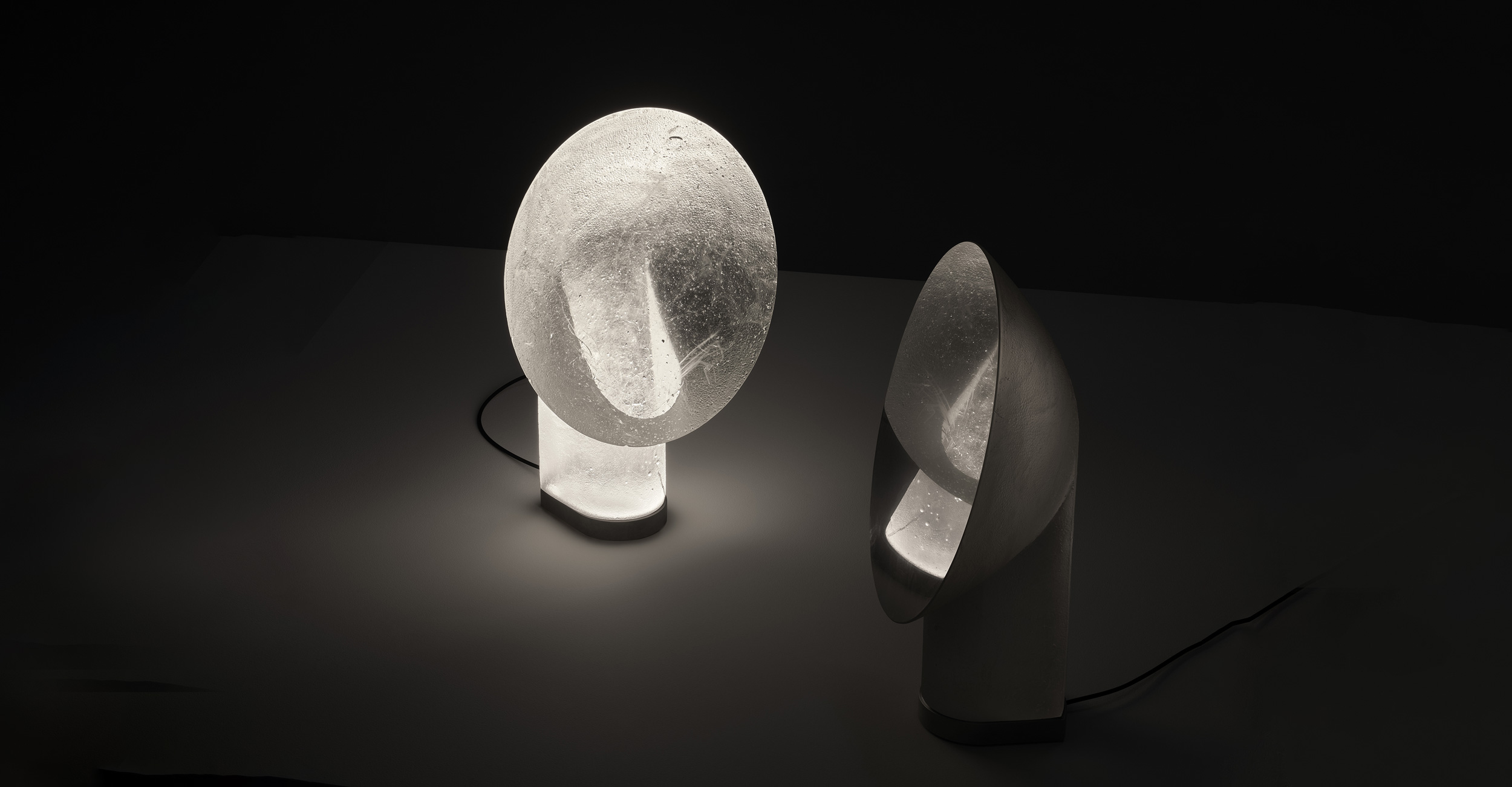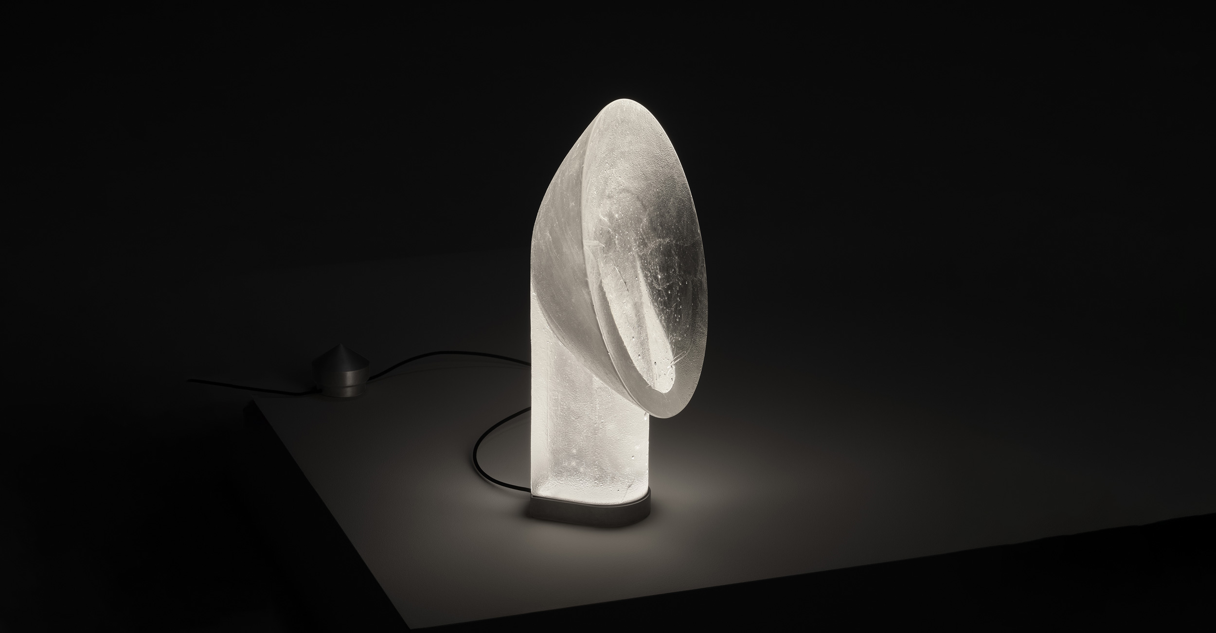 A mirror that offers no reflection, Relic presents a monolithic cone with a mirror-like surface, an optical device designed to reveal the dualities within. Crafted from cast crystal glass this brutalist creation highlights the mesmerising depth and luminosity of glass.